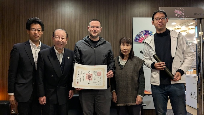 As President of the United States Tamiya Ryu Iaijutsu Gennankai, it is my great honor to announce that Gennankai Head Instructor, James Russell (Gennetsu) Sensei, has received his promotion to Nanadan (7th Degree).